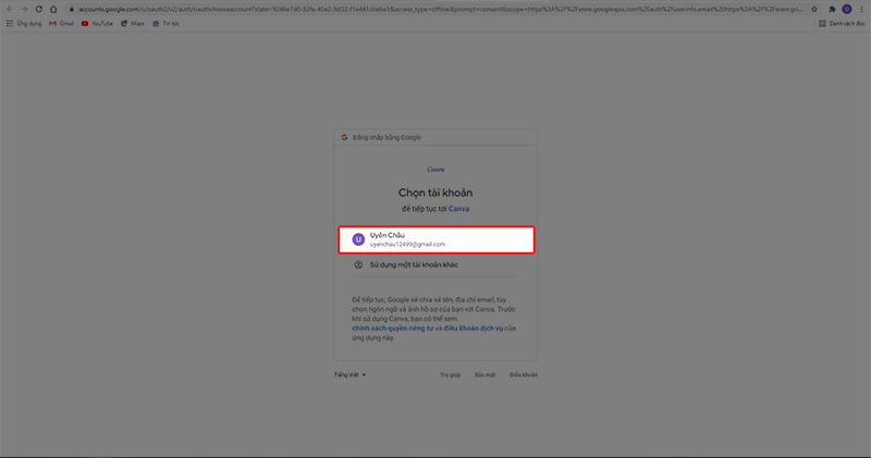 Bước 6: Tiến hành chọn tài khoản Google để tiếp tục đăng nhập