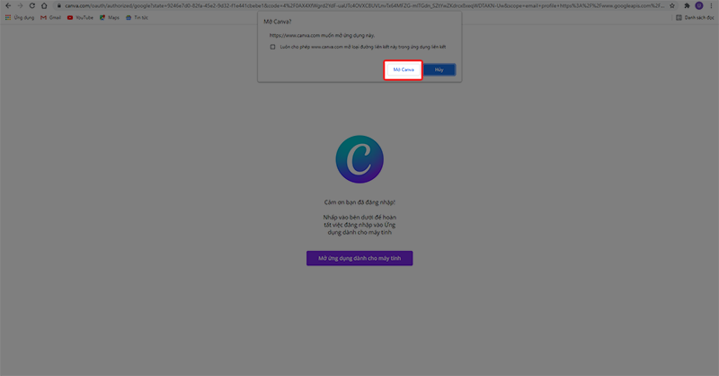 Bước 7: Nhấp vào Mở Canva